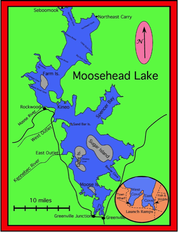 Moosehead Lake is a singularly enchanting and inviting body of water containing untold coves, spits, beaches, bars, and vistas. Vast open reaches and intimate quiet re-entrants make it a literal paradise for people fond of messing around in boats. There is more than enough space and mystery for a lifetime of explorations and spots for rendezvous to satisfy the psyche and wanderlust of most anyone. Poured all over this is a history reaching back well beyond when Henry Thoreau first visited, returning to tell Ralph Emerson of its grandness, and enticing James Russell Lowell to come and see what all the commotion was all about. It has for thousands of years, thus, long attracted a plethora of souls seeking a private wilderness playground of deep green forests and jagged mountains crowding expanses of blue water.